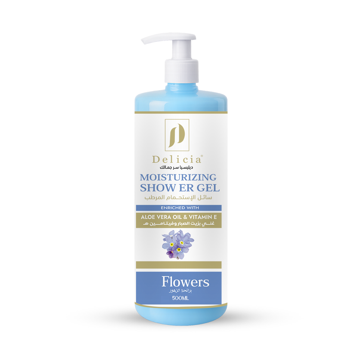 ديليسيا جل استحمام مرطب – برائحة الزهور 500 مل: استمتع بالانتعاش والهدوء مع هذا الجل الساحر برائحة الزهور الرقيقة. يحتوي على تركيبة مُرطبة ومُهدئة غنية بزيت الألوفيرا المعروف بخصائصه الملطفة للبشرة، بالإضافة إلى فيتامين E لتعزيز حاجز الحماية الطبيعي. يوفر تنظيفاً فعالاً دون أن يسبب تهيجاً، ويترك بشرتك نظيفة جداً، مُرطبة بعمق، وناعمة الملمس، مع رائحة زهور خفيفة ومحبوبة تدوم طويلاً.